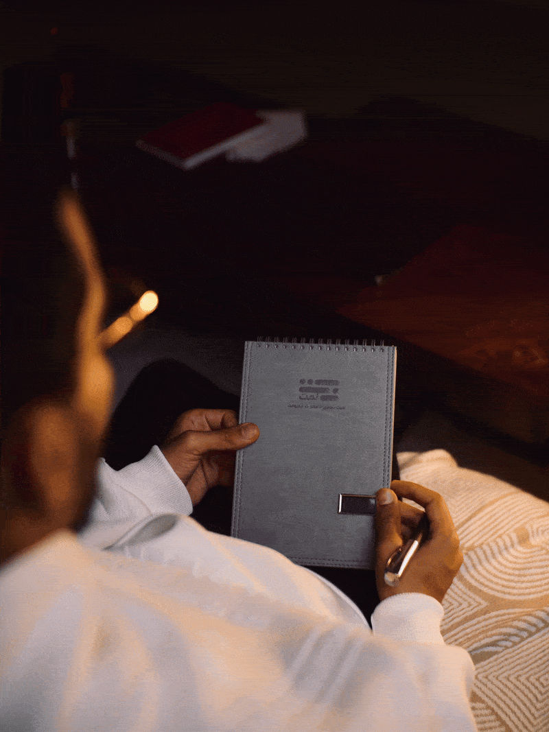 “منذ أن بدأت أستخدم هذا الدفتر، أصبحت جلسات الكتابة وقتي المفضل للاسترخاء. التصميم المدروس واللمسة الفاخرة يجعلاني أشعر وكأنني أعيش لحظة تأمل ووضوح ذهني. لا أصدق كيف يساعدني على تنظيم يومي وتقليل توتري.”
